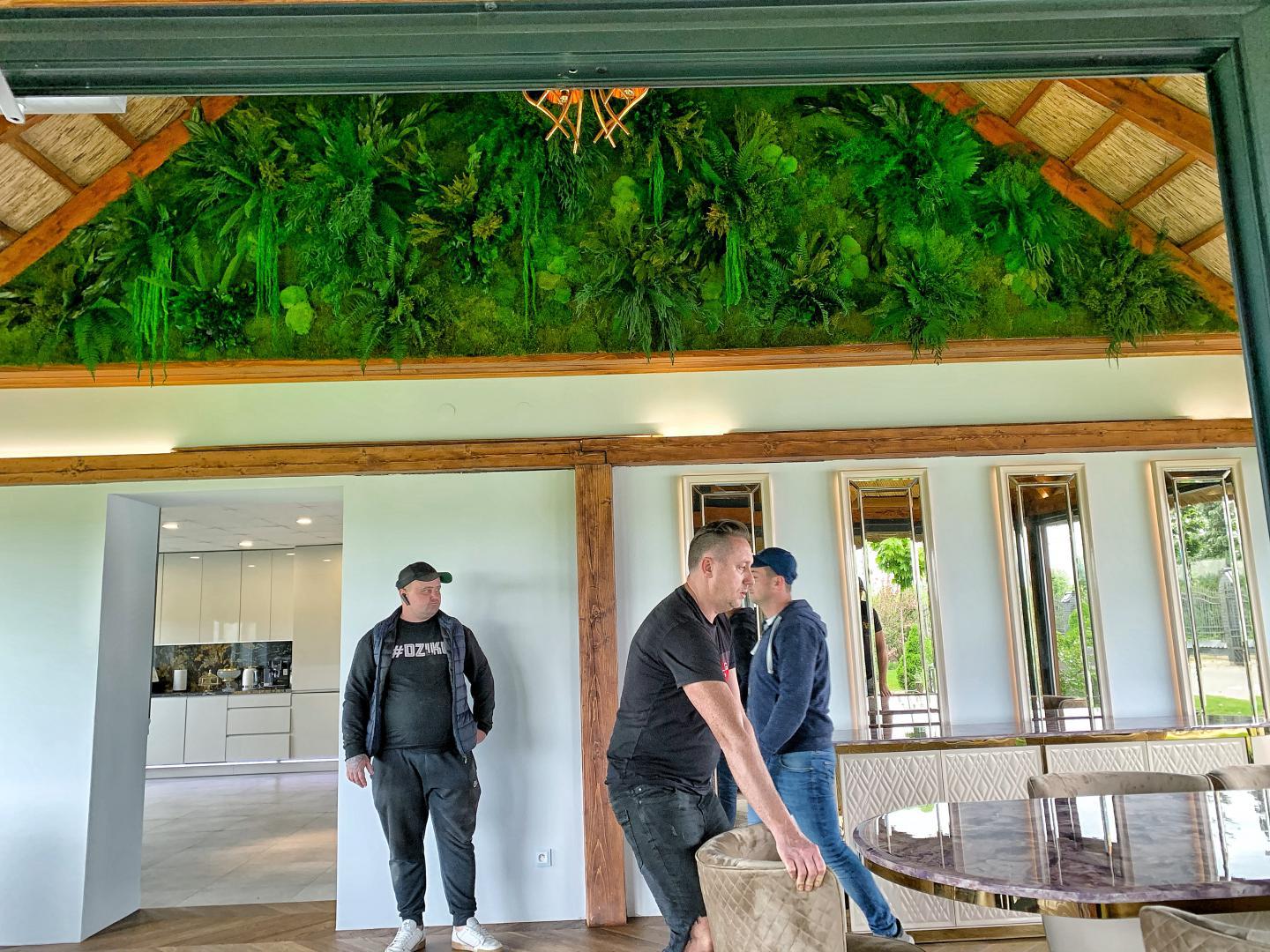 Zielone dekoracje z mchu i roślin stabilizowanych, najczęściej wykonywane przez nas dekoracje nie przekraczały 4 metry kwadratowe.